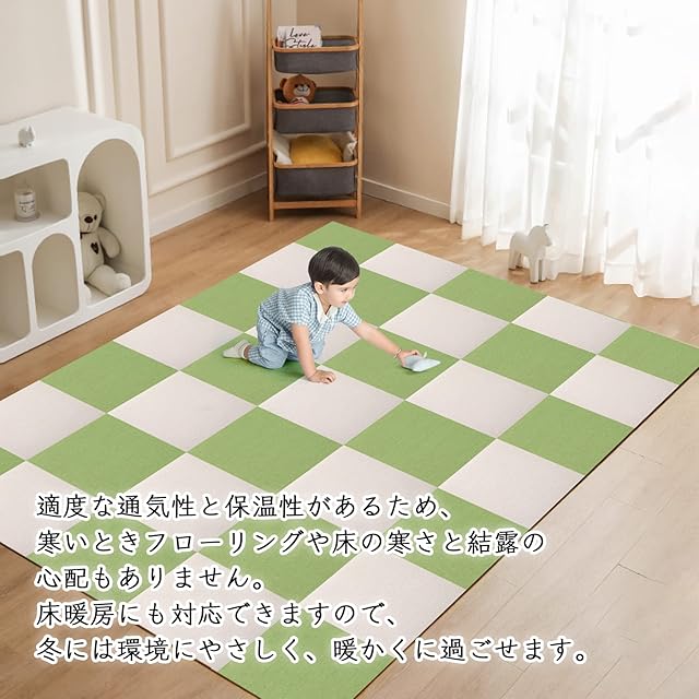 商品名:セリオン ジョイントマット タイルカーペット タイルマット ずれない 吸着マット 防音 床暖房にも対応 洗えるカーペット ペット用 床保護 チェアマット ズレにくいマット カット可能 吸着カーペット ペット猫犬用 掃除ラクラク 高齢者滑り止め対策 【30*30cm*40枚入り】色:ライトグリーン*アイボリー