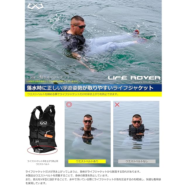商品名:JES-BASARO (ジェスバサロ) LIFE ROVER 大人用 ライフジャケット シュノーケリング ベスト フローティングベスト 釣り 固型式ライフジャケット 浮力7kg 浮力7N bas-life-if001L 身長:160-195cm Lサイズ (ブラック)