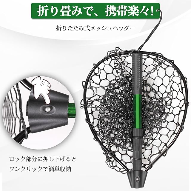 商品名:ランディングネット ラバーネット タモ 釣り網 魚に優しい/折りたたみ式/伸縮式/軽量・丈夫なアルミシャフト 淡水海水適用