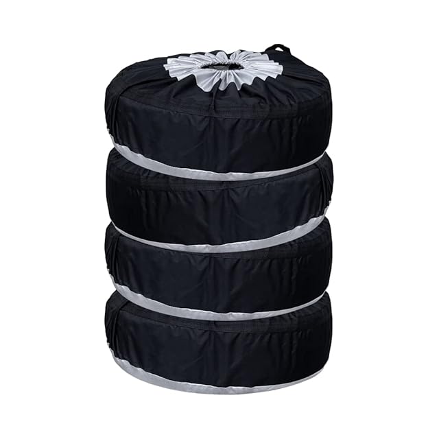 商品名:【屋外対応】 タイヤカバー 4本セット 防水 高耐久性 防紫外線 防塵 持ち手付 固定紐付 簡単装着 水洗い可 各車種対応 収納袋付き 屋外 屋内 タイヤ保管 タイヤ収納 タイヤ袋 タイヤトート タイヤバッグ Sサイズ 65×37cm [SUNGRAN]