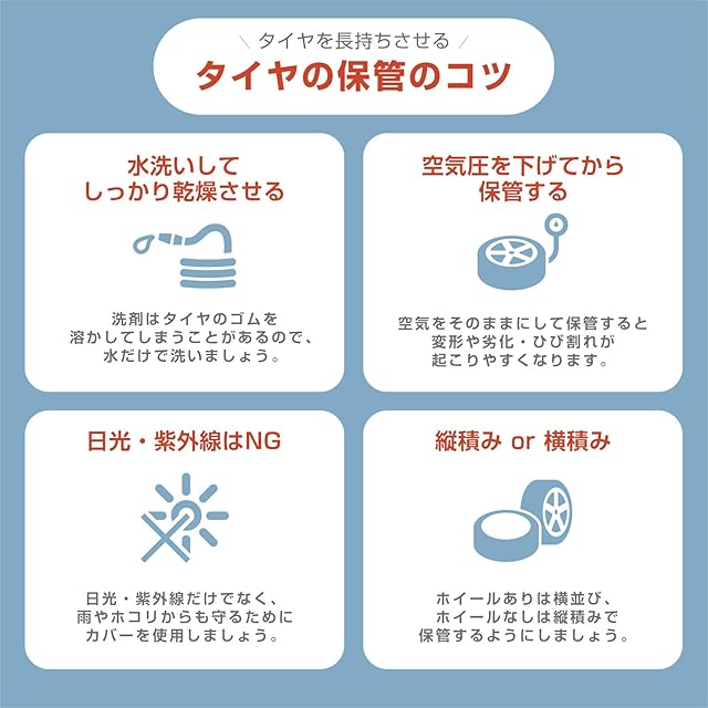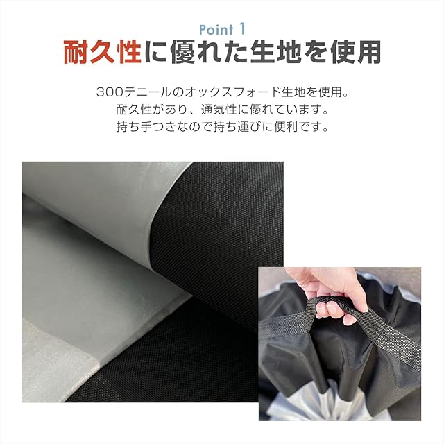 【防水・通気性】防水生地なので、雨風やホコリからタイヤを守り、通気性を活かしカビなどのトラブルも防ぎます。【簡単装着3step】Step1.タイヤを置く。Step2.紐を縛る。Step3.結べば装着完了!