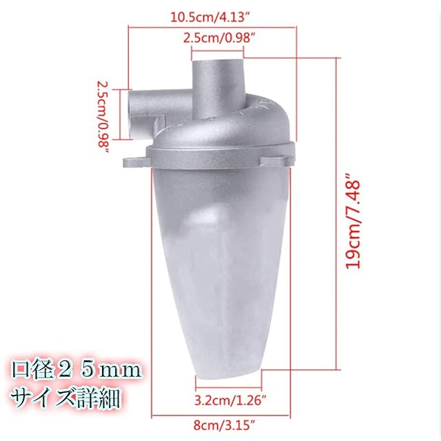 商品名:【ヘルスリフェ】 【集塵機の自作に最適!大きなゴミも吸い取ります!】 サイクロン アルミ製 集塵機 集じん機 掃除機 フランジ付き DIY用 業務用 ゴミ収集 耐熱サイクロン 木工作業 セパレーター 口径25mm シルバー