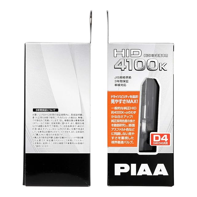 商品名:PIAA(ピア) 車用 バルブ ヘッドライト用 HIDバルブ 4100K 純正HID装着車用 3650lm※ D4R/D4S共用 12V用 車検対応 JIS規格準拠品 2個入 HL412