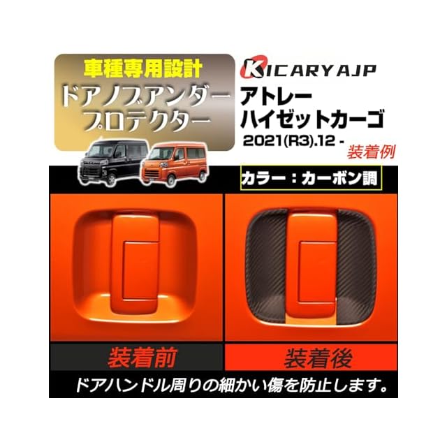 商品名:KICARYAJP ドアノブアンダーカバー エブリィワゴン DA17W スクラムワゴン NV100 クリッパーリオ タウンボックス 6P カーボン柄 ドアノブ周りの保護に 車用室外ドアハンドル ハンドルカバー キズ防止 ドアノブ プロテクター 外装 ドレスアップ カスタム 簡単装着 車種専用 日本語説明書あり
