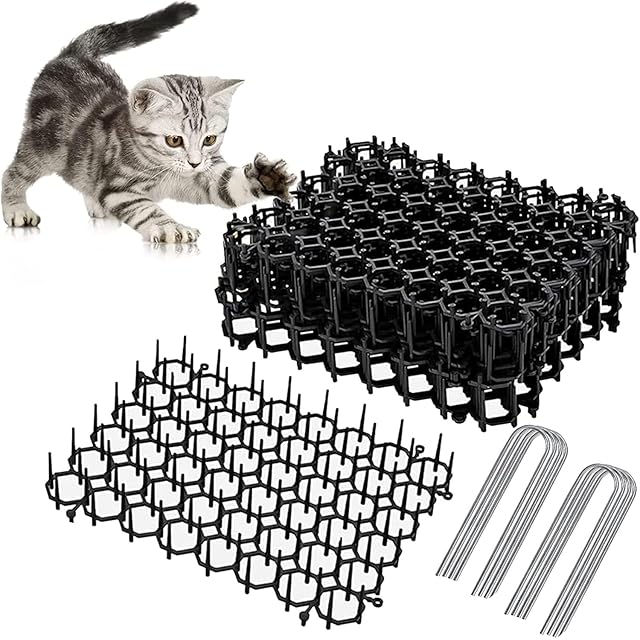 【梱包内容】猫よけシート12個セットに入り、各15*20CMで、各U字ピン付きです。 そのため、ガーデンの中で大きなエリアをカバーし、猫よけ対策、 野良猫対策 、害獣や猫侵入防止対策になります。