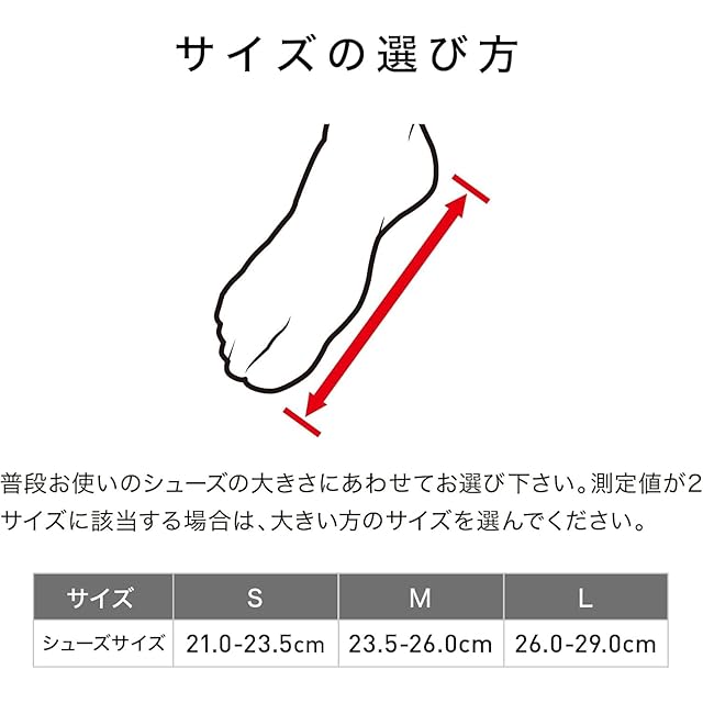 サイズ:S 21.0-23.5、 M 23.5-26.0、 L26.0-29.0
