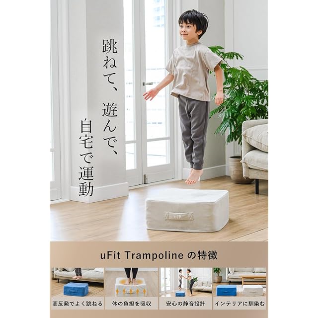 【日本国内メーカー】uFit Trampoline トランポリン クッション 室内 静音 滑り止め 衝撃吸収 50cm 50cm 20cm 高級素材 ウレタン 3次元ファイバー 高反発 カバー 洗える グレージュ 子供 大人