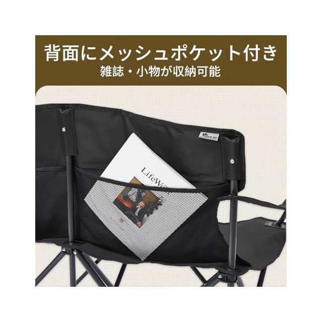 商品名:【限定!】SOLO UP アウトドア チェア キャンプ 2人 ベンチ ダブル アーム イス 折りたたみ 椅子 合金鋼 ブラック 収納袋付き M-2087