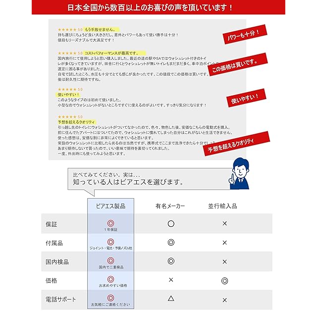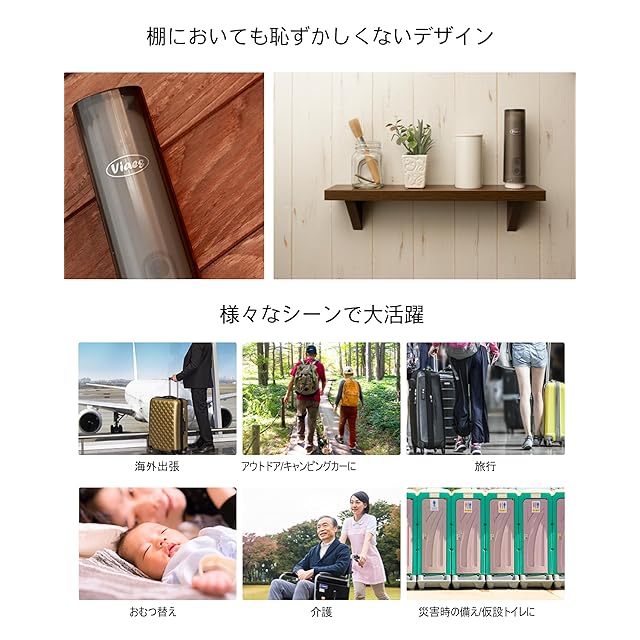 その他、キャンピングカーのトイレ、防災グッズ、ペット用品、女性用のビデとしても。