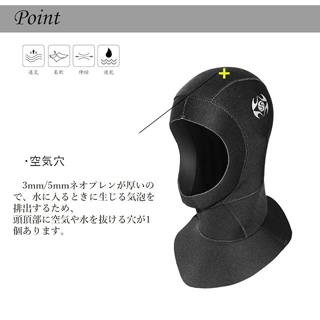 マリンスポーツに不可欠なアイテム(1mm/3mm/5mm)であり、防水保温防寒の他、運動中に頭を保護する機能もあります。
