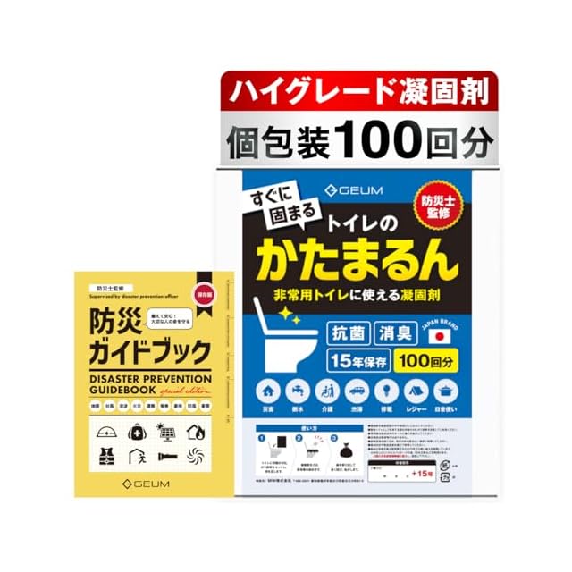 商品名:GEUM 防災士監修 かたまるん 凝固剤 簡易トイレ 携帯トイレ 非常用トイレ 消臭 抗菌 15年保存 50回分 or 100回分 GEUM031 (100)