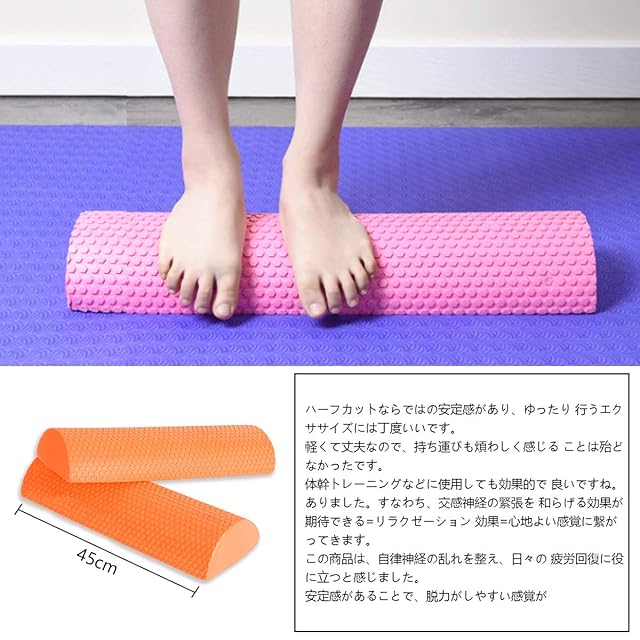商品名:ストレッチ用ポール ハーフ ヨガポール フォームローラー 半円ハーフカット 2本セット ストレッチ用ポール リセットポール ハーフカット 長さ45cm 活用マニュアル付き 日本語説明書付き (ブラック)