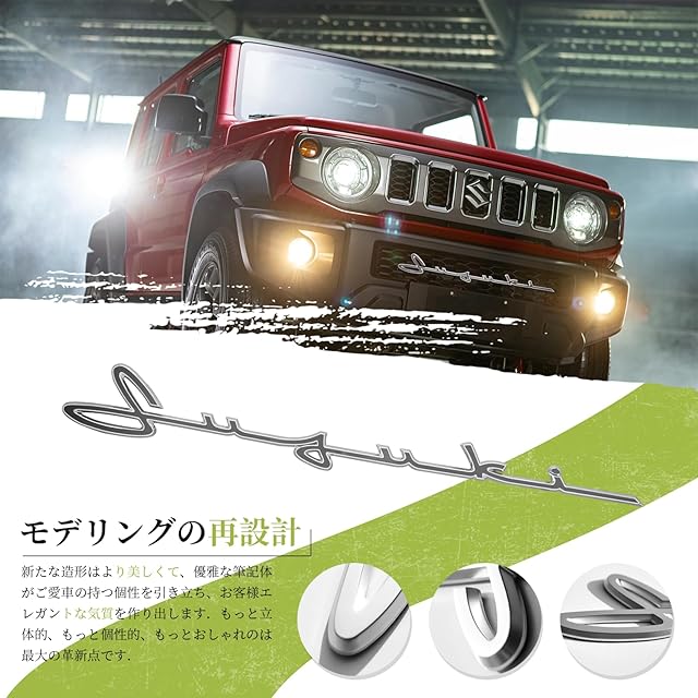 商品名:RaKuLife スズキ エンブレム 全車種適用 フロント/車体用ステッカー 飾りステッカー 筆記体 スズキ ジムにーJB64/JB74~ ステッカー ジムニーシエラ レトロ調 汎用 専用ロゴ ワゴンR デザイン感 傷防止 汚れ防止 取り付け簡単 フロント用 外装アクセサリ— (鏡面仕上げ)