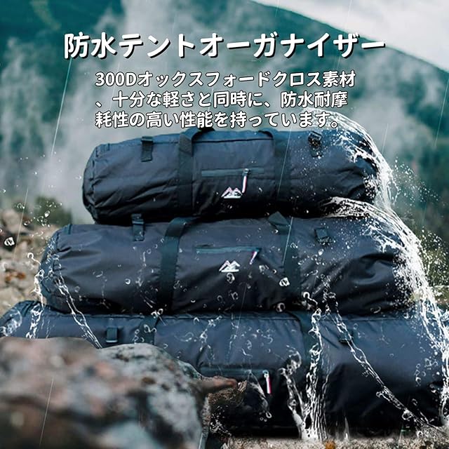 【防水&耐久性】300Dオックスフォード布に防水シリコンコーティングを施し、どんな濡れた環境でもテントと貴重品をドライで安全に保ち、湿った布で拭くことができます。