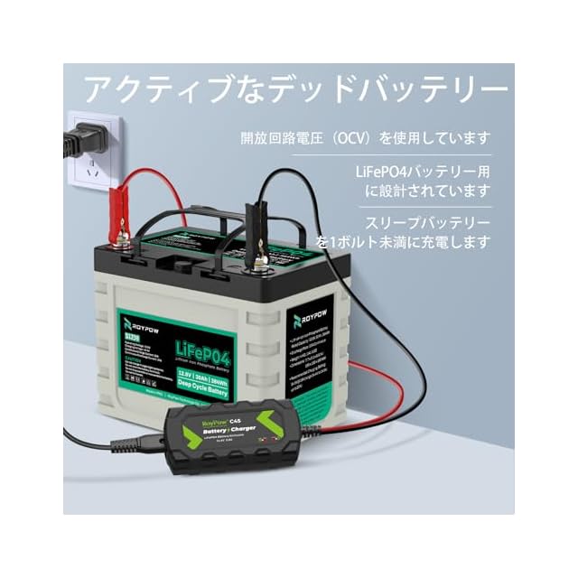 【専用充電器】:リン酸鉄リチウムイオンバッテリー(lifepo4バッテリー)専用。12V鉛蓄電池、リッチリキッド、AGM、ゲルバッテリー、ディープサイクルバッテリーも全て充電可能。