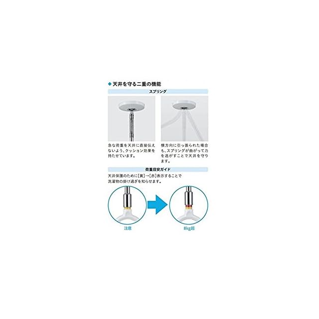 洗濯物の目安耐荷重:8kg(荷重目安ガイド付)