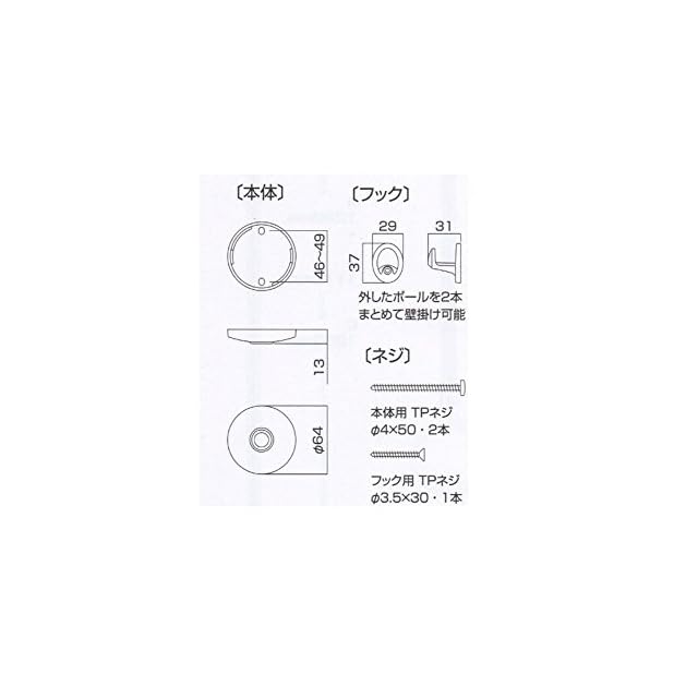 材質:[本体・ポール先端]亜鉛ダイカスト(メッキ仕上げ)、 [カバー]亜鉛ダイカスト(塗装仕上)、[ポール]ステンレス、[リング]ナイロン
