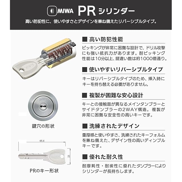 商品名:MIWA(美和ロック) LAMA DA シリンダー 錠 PR ディンプルキー 鍵 交換 取替え 玄関ドア マンション ロック キー3本 扉厚29〜41mm MCY-204 シルバー(ST色) 交換手順書付 LVF 13LA DVF AL02 AL3M WLA