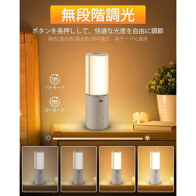 「長時間照明」ハイモード(500lm)で約10時間、エコモード(80lm)では最大85時間の連続使用が可能。無段階調光機能で明るさを自由に調整できるため、キャンプやアウトドアだけでなく、停電時の緊急灯や夜間の間接照明としても最適。1〜2泊のキャンプにも十分な電池持ちで、電気代の節約にも貢献します。