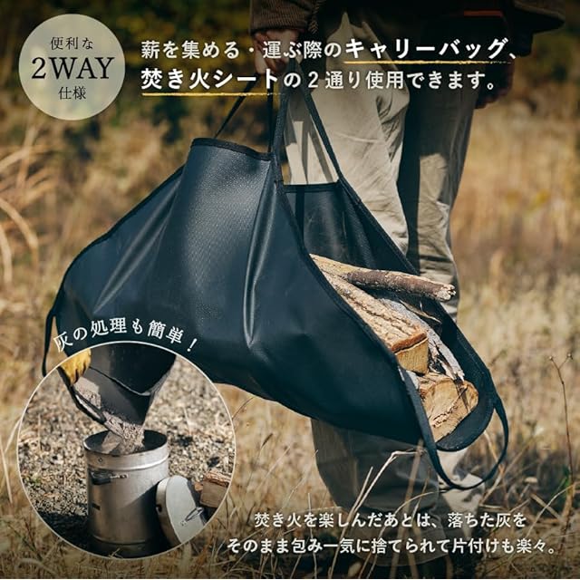 【薪運び・焚き火・灰処理をスムーズに】 TOKYO CRAFTSの焚き火シートは、耐熱600度のガラス繊維素材を使用し、焚き火やバーベキューで発生する火の粉や灰から地面をしっかりと保護します。ただ地面を保護するだけでなく、薪バッグとして薪を持ち運び、灰の後片付けもさっと行える便利な多機能なデザインです。シリコンコーティングにより汚れが付きにくく、お手入れも非常に簡単です。※注意事項をよく読みご購入ください