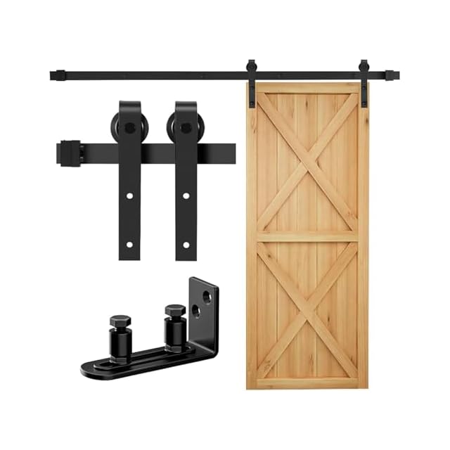 Signstek 吊り引き戸レール バーンドア金具 6FT/1.83m リフォーム建具 引戸レール 扉引戸 簡易 室内 木製 引き違い ドア 引き扉 DIY 建具金物 アルミレール シングル片開き扉 トラックレール 片引き戸 J型 5段式 ブラック