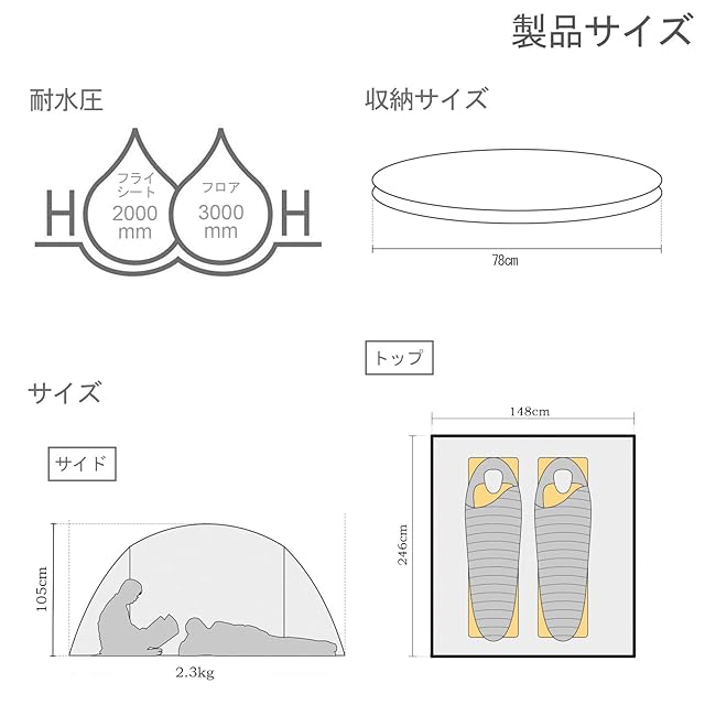 商品名:KAZOOキャンプ用自動屋外ポップアップテント防水用クイックオープニングテントキャリングバッグ付き2人用キャノピー