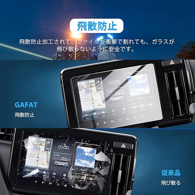 【9H硬度・傷防止】アサヒの硬度9 Hの強化ガラスを素材とし、強い硬度を持ち、スクリーンを外界の利器や硬物に傷つけられないように保護し、ナビゲーションの美観を保っています。優れた抗攻撃機能を持ち、スクリーンの安全を守ります。また、保護ファイルは飛散防止技術が加わり、保護ファイルが割れても破片が飛び散らず、車内の人の安全が確保されます