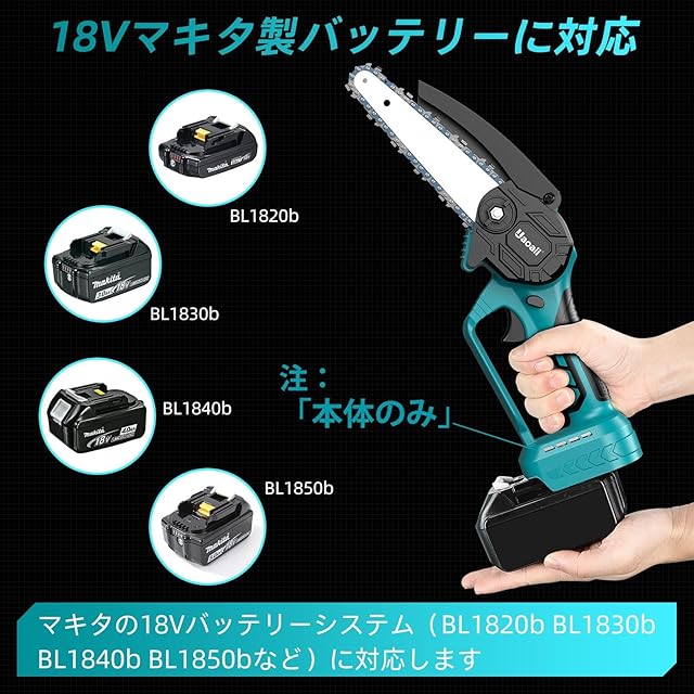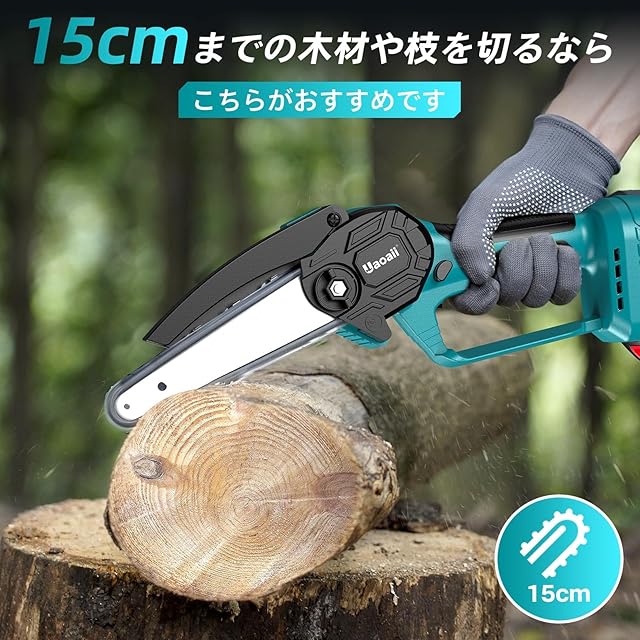 商品名:【2025年新登場】Uaoaii 電動 チェーンソー 充電式 ハンディチェーンソー【本体のみ・バッテリーと充電器は付属しない】ミニ ちえんそー 6インチ コードレス 18vバッテリー対応 軽量 小型 枝切り 竹切断 薪作り 農業 園芸用日本語取扱説明書付き