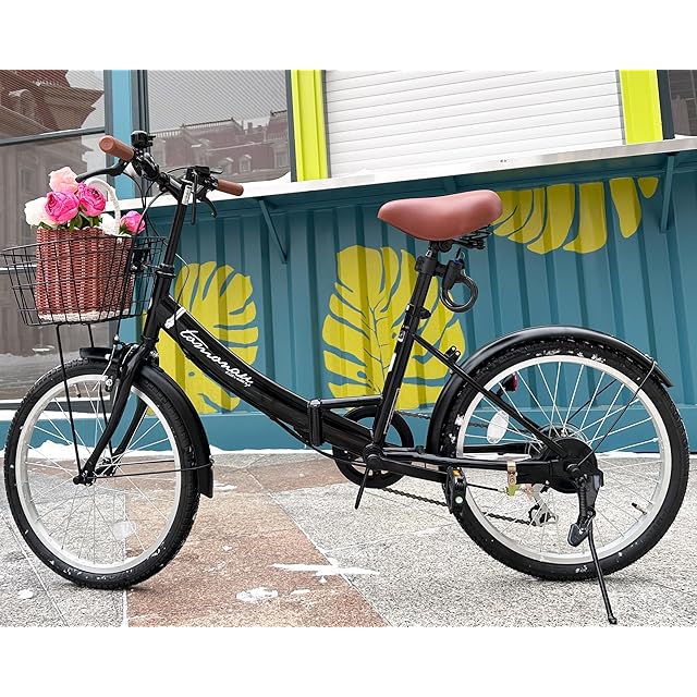 商品名:TOMONAU 折り畳み自転車 20インチ 折りたたみ自転車 6段変速 カゴ ワイヤー錠 ライト付き 通勤 通学 街乗 前後泥除け装備 ハンドルの高さ調節できる 小径車 ミニベロ-T-FDB206L (ブラック)