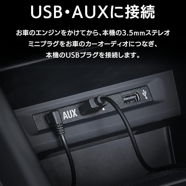 スマートフォン等とBluetoothで接続し、AUX端子経由で音楽再生やハンズフリー通話がご利用になれます。