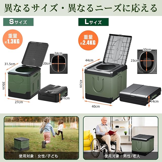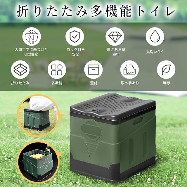 【多機能性&多用途】トイレ機能: 主な機能として、通常のトイレと同様に使用できます。座席として: トイレ機能だけでなく、蓋を閉じれば簡易な椅子としても利用できます。キャンプサイトでの追加の座席として使えるため、荷物を減らせます。収納スペース: 使用しないときには、中に小物を収納できる設計になっているものもあります。例えば、キャンプ用品や旅行用の小物を入れておけます。