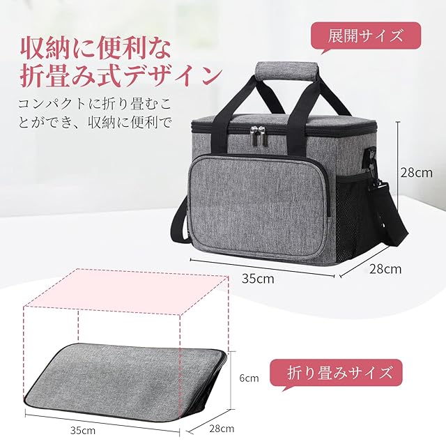 【3WAY仕様・軽量コでンパクトに収納可能】 保冷バッグ 大容量 は入れる物の量に合わせて手持ち・肩掛け・二人持ち3タイプから、持ち方を選べる3way仕様です。付属したショルダーストラップは取り外しでき、長さも調整が可能になっていて、さらにショルダーパッドも付いたことにより、ショルダーストラップの食い込みを軽減、肩からのずれ落ちを防げます。使用しないときは、スペースをとらずに ソフトクーラー を折りたたんで保管できます、収納後サイズわずか約35×28×6CMです。