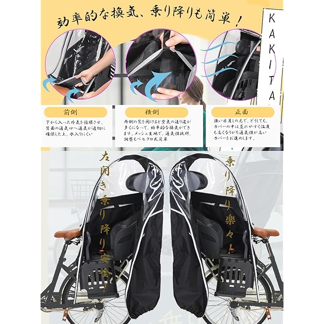 自転車 チャイルドシート レインカバー 後ろ 子供乗せ 600Dナイロン 耐久性アップ 広々空間 型崩れしにくい 乗り降り簡単 防寒 雨よけ