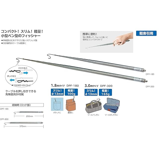 【仕様】・伸長時長さ:1800mm・収納時長さ:250mm・質量:100g・竿最大径:13mm・竿数:11