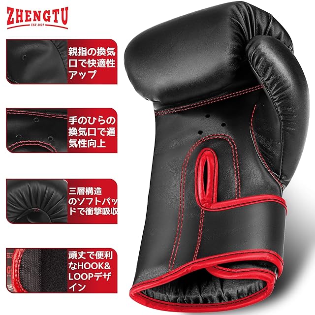 商品名:ZHENGTU ボクシンググローブ 6oz 【子供・女性専用設計・PUレザー・精密な重量管理・安全性と快適性・革新的な配色・ラテックス綿複合インナー・特殊な緩衝設計・滑り止めグリップ】 ストレス発散 運動不足解消 (黒赤, 6oz)