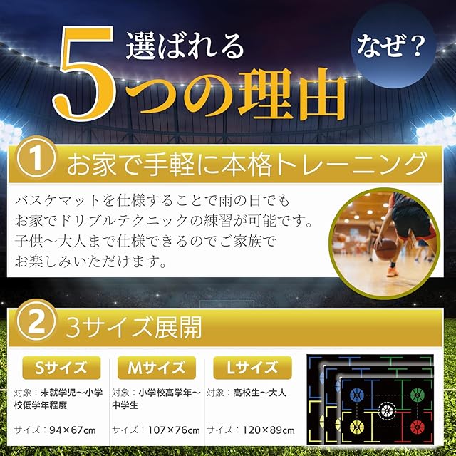 【多様なトレーニングが可能】 瞬発力やバランスの向上にも役立ち、ウォーミングアップにも最適。バスケットボール初心者から上級者まで、あらゆるプレイヤーがこのマットで自分のスキルを磨けます。