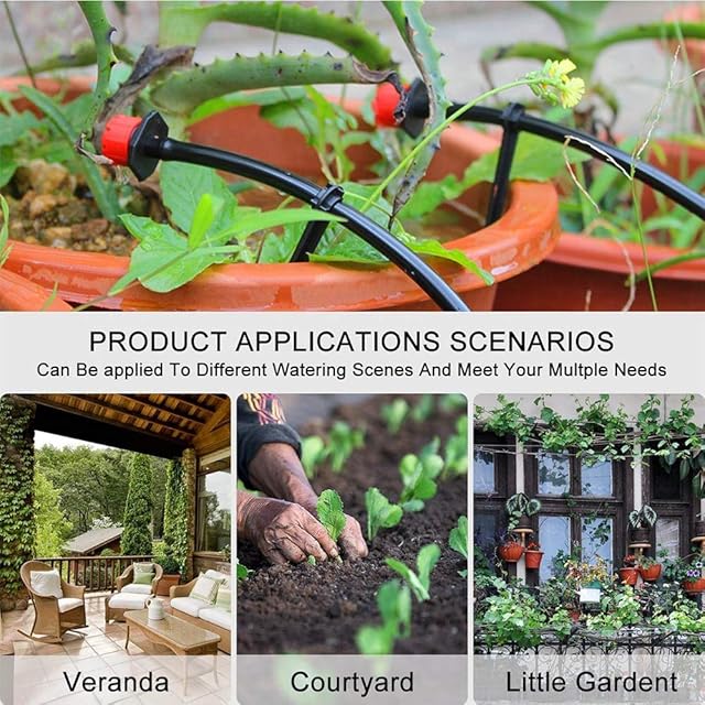 【便利性と実用性】ドリッパーキットは、ネジ式蛇口(洗濯機タップまたはPVCプラスチックチューブトップ)に直接接続することができ、便利で実用的です。それは広く灌漑キットを使用して、我々は自動給水花、自動植物の水を注ぐ、自動給水でそれを使用することができます。自動給水システム、それは植物や花を水で良いです。それはあなたのタップタイトスレッドアダプターとオープンウォーターのときに自動灌漑することができます。