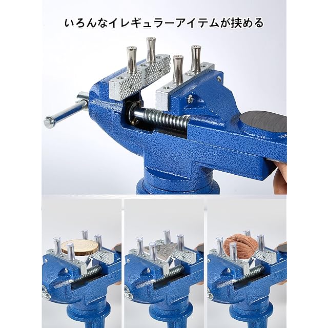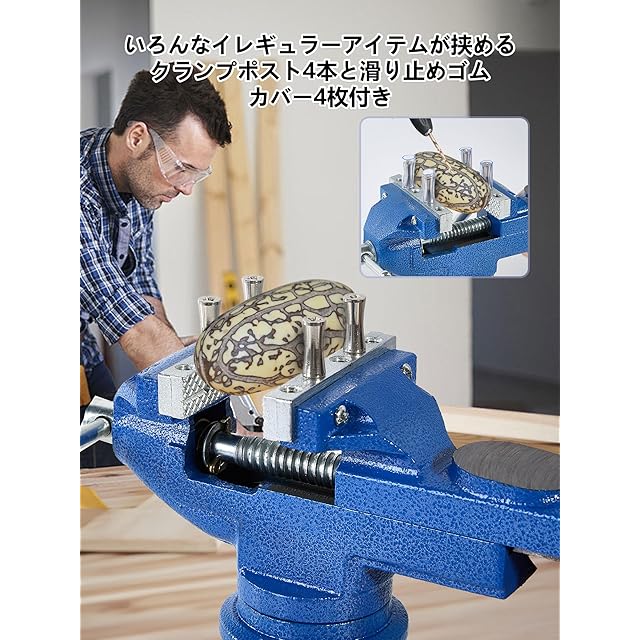 【サイズ詳細】本体重量1.8kg、360°回転盤。クランプの最大開口幅64mm クランプのグリップ力は300kg、【セット内容】青卓上万力*1、手袋x1、滑り止めマットx2、クランプポスト4本と滑り止めゴムカバー4枚付き