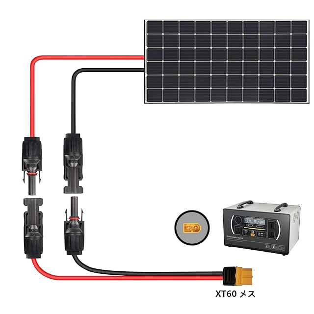 商品名:WBGADAM 10M mc4 xt60 変換ケーブル メス 12AWG 延長ケーブル、ポータブル発電所、ソーラー発電機用 、 MC4からXT60ポート から 対応 変換アダプター