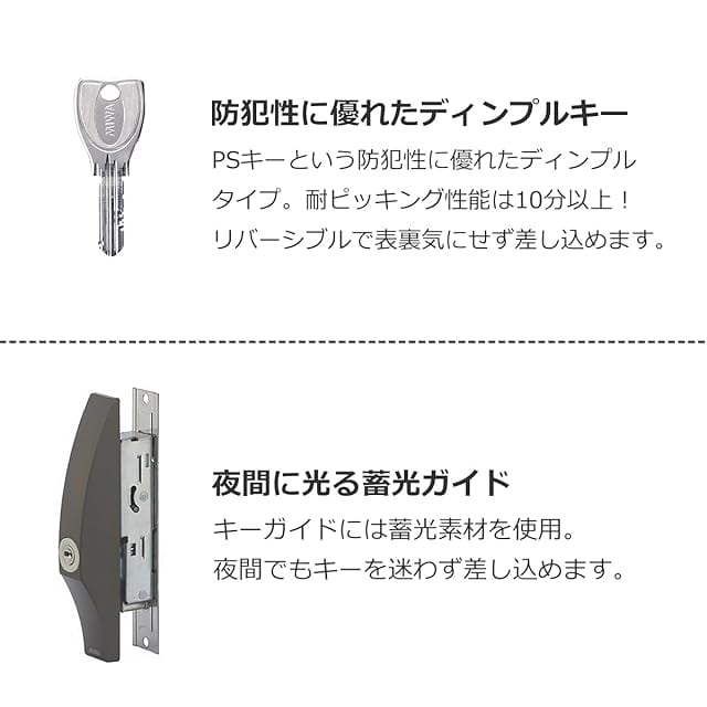 鍵は防犯性能の高いディンプルタイプ。裏表気にせず差し込めます。