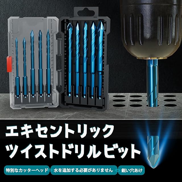 商品名:CSOOM 10セット斜頭偏心ツイストドリルビット、ガラス、レンガ、プラスチック、セメント、木材、タイルなど用偏心石工ドリルビットセット - 工業用強度の超硬ドリルビットチップ、耐衝撃性六角シャンク付き