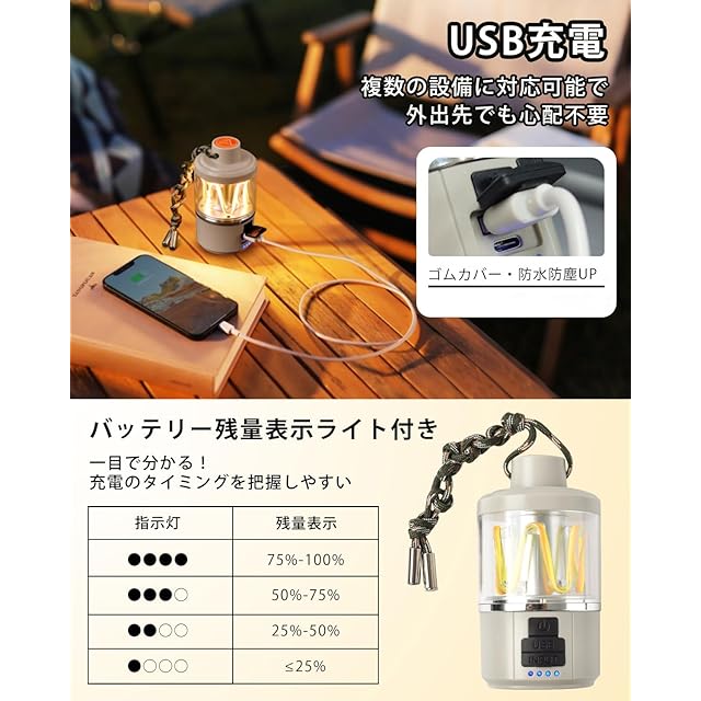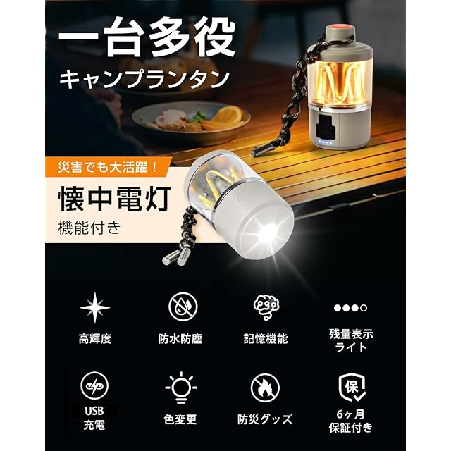 この最新版ランタンは、あなたの様々なアウトドア活動に最適なキャンプ ランタンです。1500ルーメンの高輝度LEDランタン Type-C充電式で、および3500mAhの大容量バッテリーを内蔵し、最大連続使用時間が大幅に延び、より長い時間の明るさを提供します。<br>無段階調光調色と記憶機能により、好みの明るさや色温度を保存して次回からすぐに使えます。防水防塵IP55仕様のこのLEDランタンは、雨天やほこりの多い環境でも問題なく使用可能で、耐久性に優れています。<br>ストラップ付きで軽量小型のデザインは吊り下げや卓上置きが簡単で、ソロキャンプからグループキャンプまで幅広く対応します。緊急時の停電や防災用としても便利な懐中電灯 兼用で、安全面も安心です。<br>このランタンは、登山や夜釣りなど多様な屋外シーンで大活躍します。さらに、バルミューダ ランタンのようなスタイリッシュなデザインとパフォーマンスを持つことで、日常の生活や特別な瞬間を彩ります。<br>テーブル上で使うキャンプ ライトとしても活用でき、レッドレンザーやクレイモア ランタンのように多目的に対応します。ソーラーランタンやスームルーム ランタンと同様に、アウトドアや旅行先で重宝します。このLED 懐中電灯兼用ランタンを手に入れて、あなたの冒険をもっと楽しく、安全にしましょう。