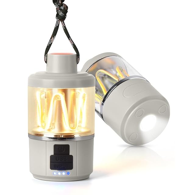 【2025新発売・一台多役キャンプランタン】:アウトドアや非常時に頼れるパートナーとして設計されたこのランタンは、機能性と使い勝手にこだわり、置き型ライト/吊り下げ型ライト/懐中電灯などとしてよく使われています。従来のキャンプ用ランタンと異なり、革新的なCOB光源技術を採用、白色と暖色のタングステン線が均等に絡み合い、照明機能が強化されただけでなく、適切な装飾効果もあります。無段階調光機能も搭載し、電源オンになった後、ボタン長押しにて弱‐強の間で切り替えますので、どんな暗闇でも打ち払う超高輝度で部屋全体を照らします。アウトドアランタン、懐中電灯、日常の作業灯、様々なニーズを満たして使い勝手が抜群!
