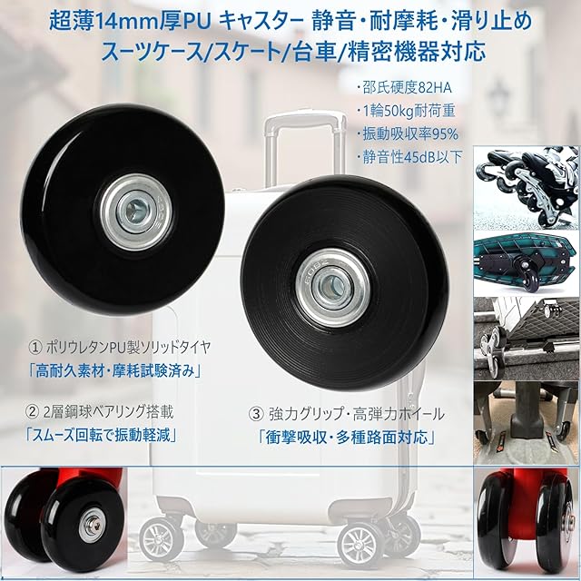 適用範囲:ホテルや空港など様々な路面に対応します。ショッピングカート スーツケース キャリーボックスなどの車輪補修用、キャスター取替え、消耗したキャスターを自分で簡単に交換!
