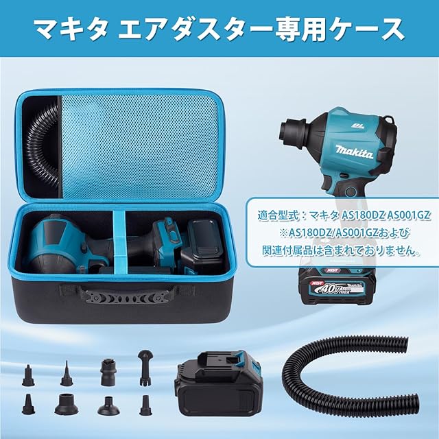 Kotesoto マキタ エアダスター 専用収納ケース AS180DZ ケース ブロワー マキタケース makita ケース AS001GZ 充電式エアダスター 収納ケース 電動エアダスター 18V バッテリーケース 表面防水 耐衝撃 繊細なデザイン 収納バック付き 軍手付き ケースのみ