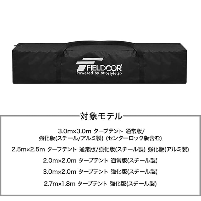 ■サイズ:(約)22×22×114cm■材質:ポリエステル / ポリエチレン■対象モデル:〇3.0m×3.0m タープテント 通常版/強化版(スチール/アルミ製) (センターロック版含む)〇2.5m×2.5m タープテント 通常版/強化版(スチール製) 強化版(アルミ製)〇2.0m×2.0m タープテント 通常版(スチール製)〇3.0m×2.0m タープテント 強化版(スチール製)〇2.7m×1.8m タープテント 強化版(スチール製)※商品は、モニターによって色合いが異なって見える場合があります。 また、仕様・デザインは改良のため予告なく変更することがあります。