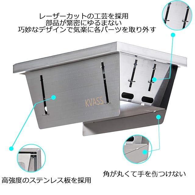 商品名:KVASS バーベキューコンロ 折りたたみ 焚き火台 コンパクト キャンプ用品 卓上コンロ 折り畳みコンロ ミニ BBQグリル 1台3役 瞬時に展開・収納 ステンレス鋼