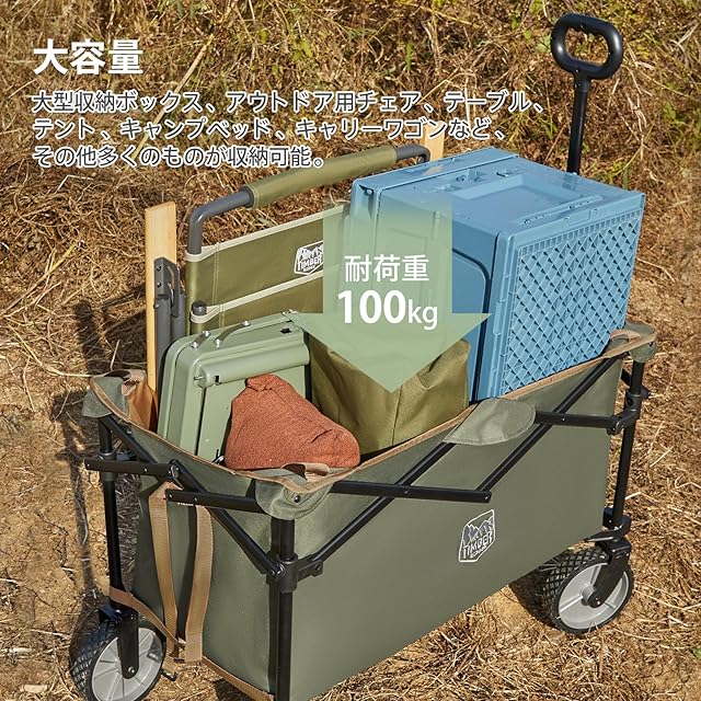 商品名:TIMBER RIDGE キャリーカート キャリーワゴン アウトドアワゴン 折りたたみ 大容量 147L 特許取得済みのコンパクト設計 軽量 収束式 全地形対応 自立収納 耐荷重100kg アウトドアキャリー BBQ 釣り キャンプ グリーン