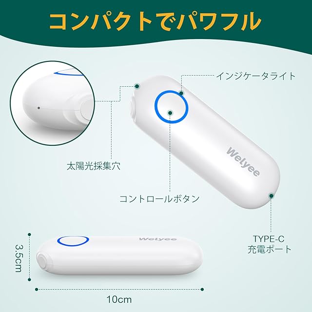 【気軽に出かけて、これ一台で十分!】サイズは100mm × 35mmで、リップスティックほどのコンパクトさ。どんなポケットにもすっぽり収まり、夏のお出かけにぴったりの相棒です。1年間品質:万が一、初期不良や使用中に問題が発生した場合でも、「アカウントサービス」>「注文履歴」>「販売元」>「質問する」からお気軽にご連絡・ご相談ください。