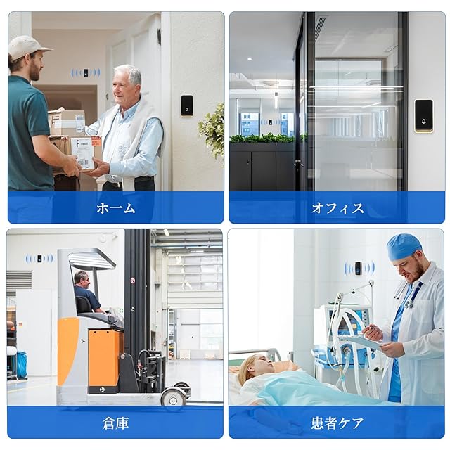 ✨【幅広い適用性】使用範囲が非常に著しいです。ボタンを押すと離れた場所へチャイムでお知らせ、来客時のインターホンチャイム、お年寄りや身体の不自由な方の呼び鈴、各部屋間の呼び出し、店舗、事務所、玄関、ナースコール、介護現場、レストランや倉庫などでの呼び出しチャイムとして、広く活躍しています。